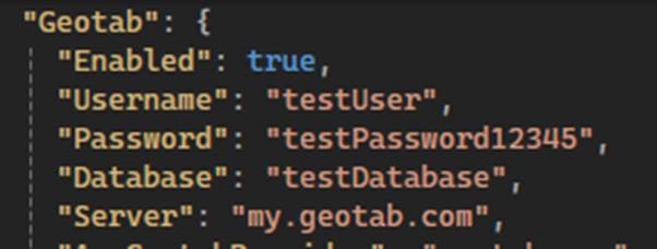 These Geotab settings should be configured to enable Geotab and point to a valid database where telematics data can be retrieved.